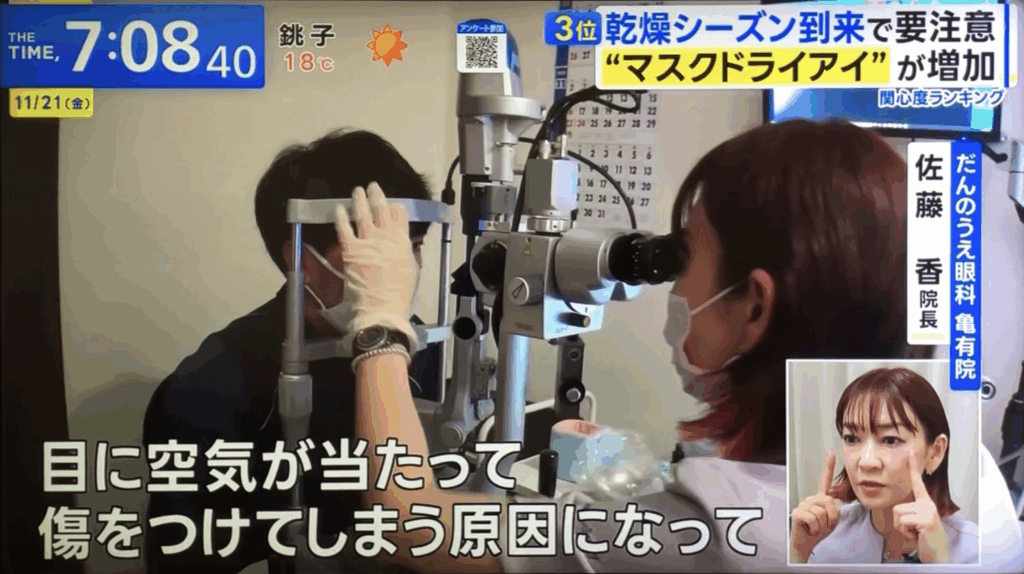 11月21日(金)に放送された TBSテレビの朝の情報番組『THE TIME,』内の「関心度ランキング」コーナーに、亀有院の佐藤院長が出演しました。