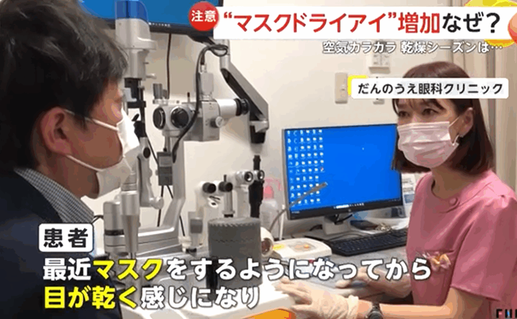番組では、乾燥やインフルエンザ対策でマスクを着用する機会が増える中、「マスクによる目の不調」について解説しました。マスクに隙間があると漏れた息が目に当たり、涙が蒸発して乾燥が悪化します。さらに、マスクをしたままパソコンやスマホに集中すると、まばたきが減ってドライアイのリスクが高まります。